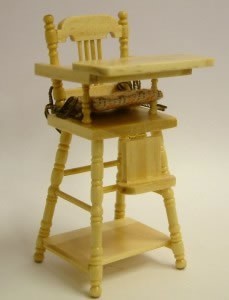 Cette unique chaise haute de poupée à l'échelle 1/12 est faite en bois véritable et est livrée avec un coussin. Le repose-pieds est réglable et la tablette se lève comme une vraie. De haute qualité - Heidi Ott. SuisseArticle épuisé